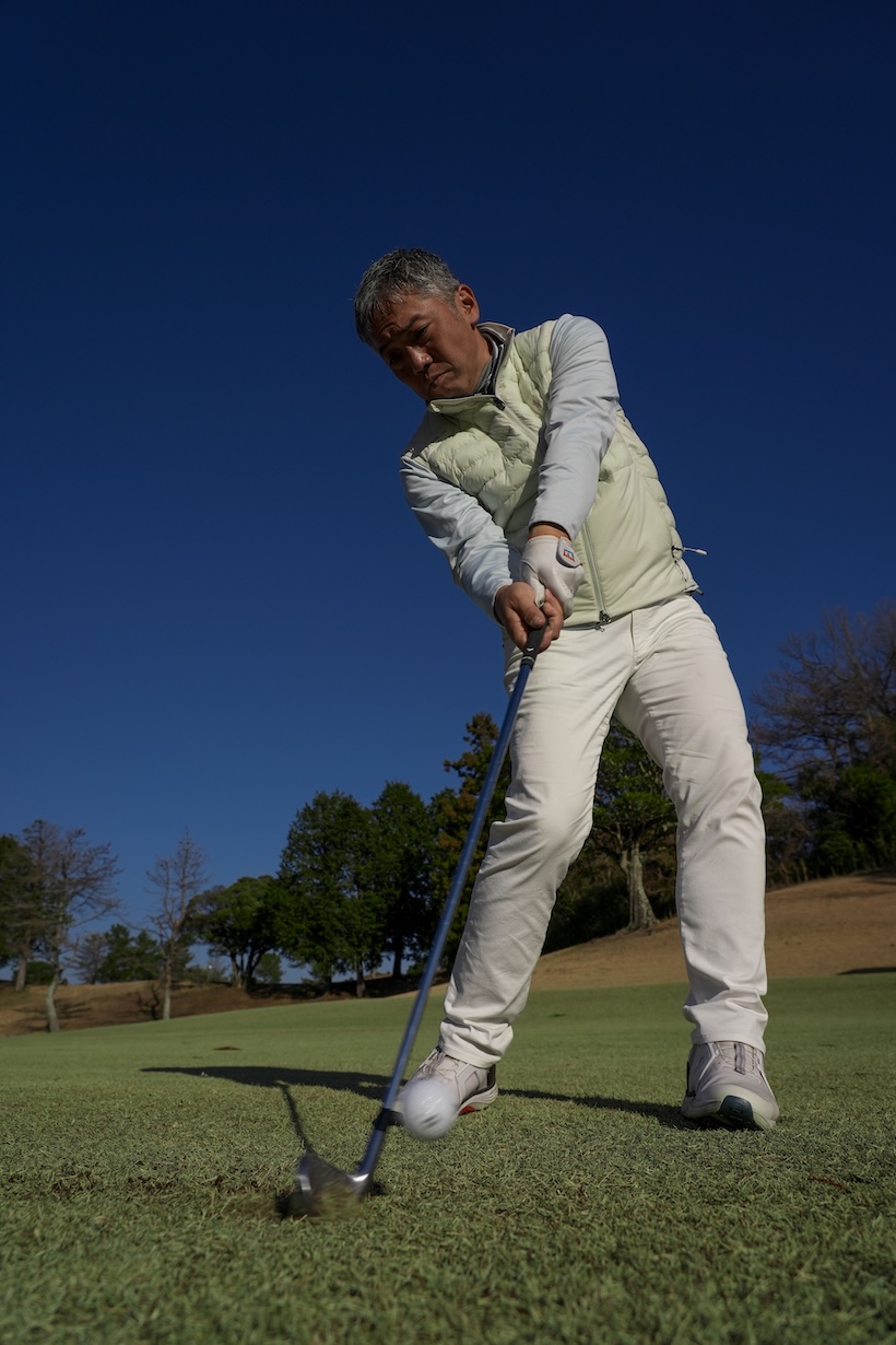 「シリーズ全体でカッコよさが増した『QUANTUM』ですが、その中でいちばん目を引くのが『MAXアイアン』です。ヘッドが大きすぎず、ネックもストレートに近い見えかたです。ひっかける感じもなくアベレージゴルファー向けのアイアンには見えません。打ってみるとフェースカップ構造らしい弾き感がありますが、以前のモデルと比べるとかなり打感はやわらかく感じます。ロフトが少し立っていますが球は浮いてくれて、飛び系にしては止まりやすいです。自由自在とはいいませんがドローやフェードをイメージしながら打てます」(石井)