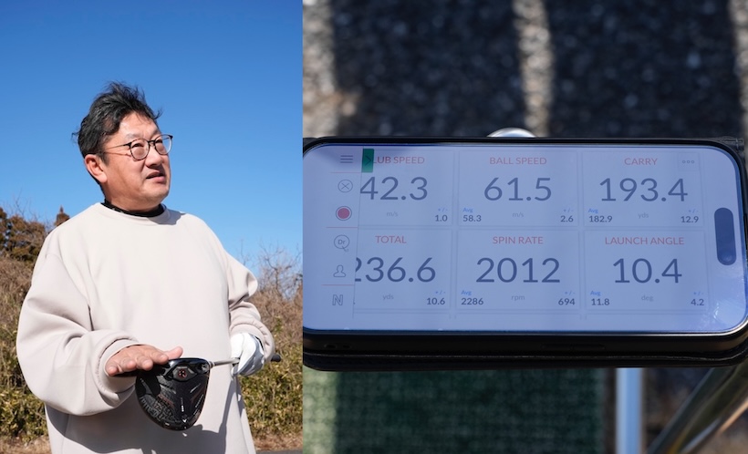 「左を消せるので持ち味の飛距離を生かせる」と話していた朝熊大貴さんは♦♦♦MAXで飛ばしていた。「振りやすくて芯に当たりやすいです。スピンも減って真っすぐな球が出ました。ミスしたときも曲がりが抑えられてフェアウェイに残ってくれました」(朝熊さん)