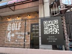 そして、外に出てみると目に入るのが、大きなQRコード。まるで海外のストリートのような雰囲気で、思わずスマートフォンを向けたくなる。このQRコードからはマスダゴルフのサイトへアクセスでき、施設の世界観づくりへのこだわりを感じさせる。