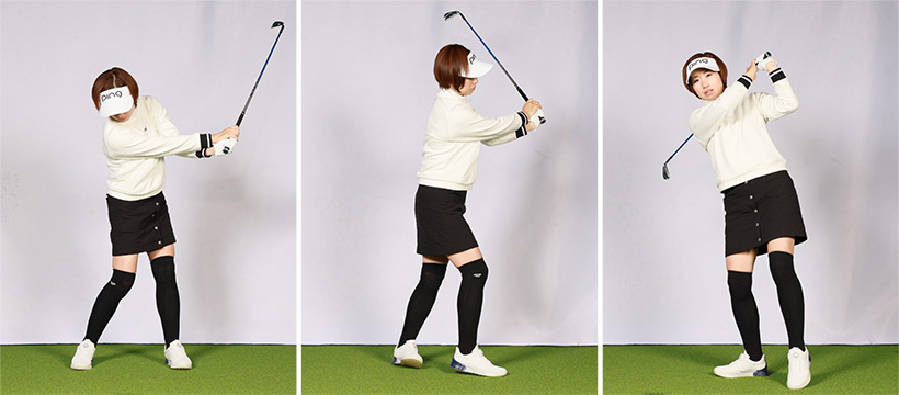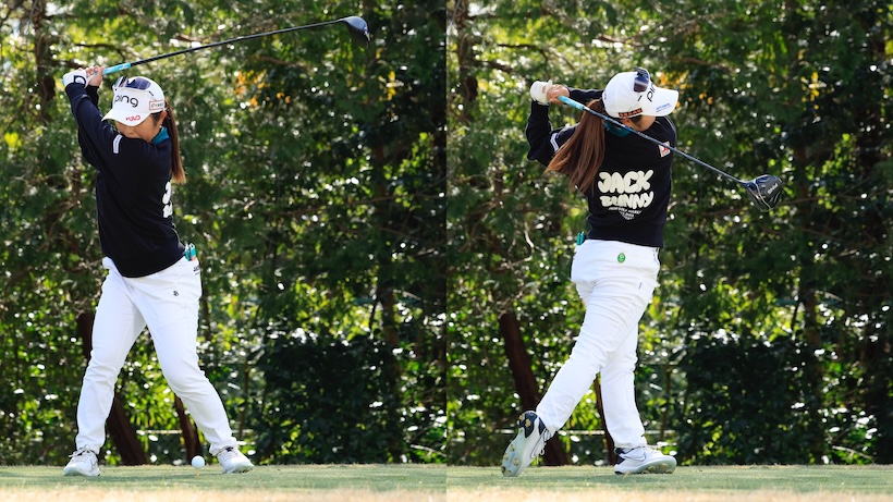 何せ体の軟らかさが違います。女子プロとアマチュアのスイングデータを比べてみると、例えば胸や腰の回転量がまるっきり違います。これはスキルやトレーニング云々の話ではなく、筋力や筋肉量が少ないがゆえに回るという部分もあれば、そもそも可動域が広いこともあります。つまり、女子プロの体は大きな動きができる作りになっているので、ハナから男性が真似るには無理があるのです。