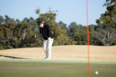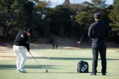 ショートゲームを大事にしているという永峰。弾道計測器を用いたテスト以外に、自分で3ヤードくらいの短いアプローチをして、どれくらい止まってくれるかを確認する。