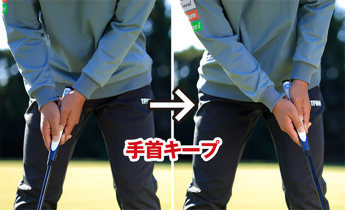 前腕部とパターが一直線なら手首が固定されて芯でヒットしやすい!