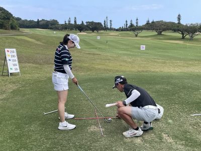 また、これは競技ではできませんが、プライベートのラウンド中ならスティックを置いたりして距離感をチェックしながらやれば、ナイスショットの可能性は高まるはずです(もちろんスロープレーにならない範囲で!)。
