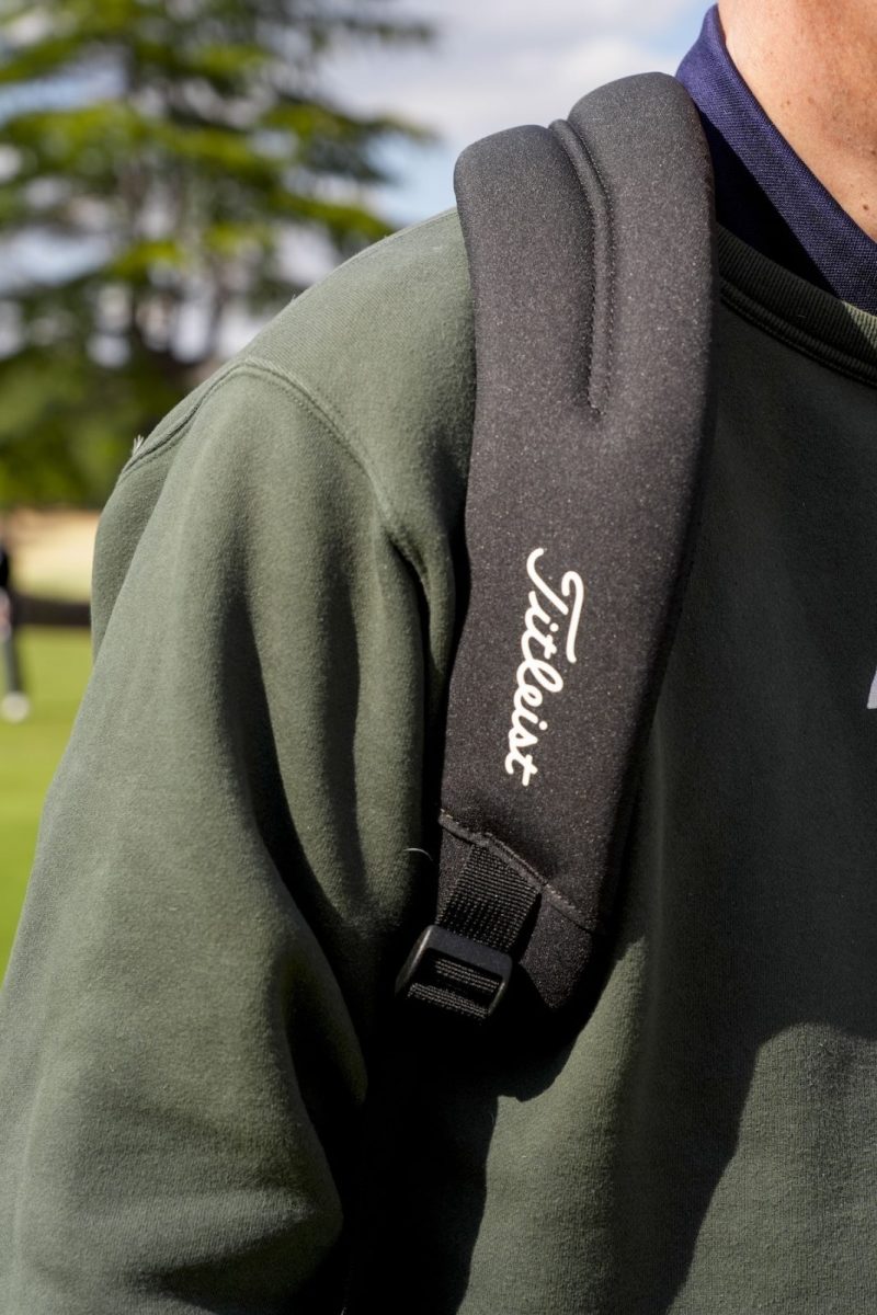 ちなみに佐々木さんが話してくれた軽さと収納力について栗原さんに聞いてみると、「重くは感じなかったし収納力もあったので、きっと改善されているのでしょう。収納ポケットもたくさんありましたよ。特にマグネットで開閉するポケットは出し入れがしやすくて重宝しました。飲み物のボトルを入れるポケットの中にも断熱材が使われていて細かいところまで行き届いていると感じました」ということで、最新モデルにはリニューアルされているところが多々ある様子。トップとカフが一体型になったハンドルもついているので、ラウンド外でも持ち運びも楽そうだった。