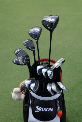 3Wは前回優勝時と違い、ニューモデルの「スリクソン ZXi」(15度)に替わり、シャフトはドライバーと同じ。どちらのクラブも、スリーブ(カチャカチャ)のポジションを見ると「STD FL(スタンダード フラット)」から1目盛り左の「L1」(ロフト角+0.5度、フェース角+1度、ライ角−2.5度)に設定していると思われる。