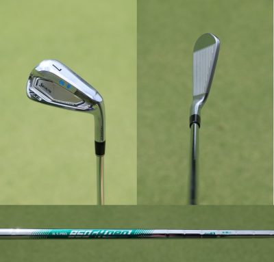 ここまでのドライバー、FW、UTというウッド系クラブは、見た目の好みとか、球が少しつかまりつつ上がりやすくなるスリーブポジションのほうがイメージした弾道が打ちやすい、といった理由で設定したのでは。また、ヘッド(ZXi)もさることながら、シャフト(テンセイ)も同じシリーズでそろえることで、ウッド系クラブの統一感を持たせていることがうかがえる。シビアなロングゲームでもリズムよくプレーできるクラブをそろえたことが、勝負どころとなる決勝ラウンドの2日間で60台をマークして、一気にスコアを伸ばしたポイントだろう。