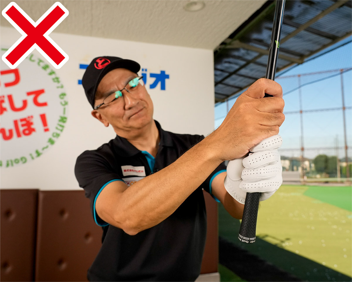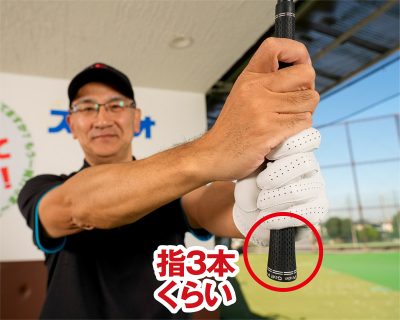 グリップの真ん中を握ればスイングがコンパクトになり、ナイスショットの確率がアップ