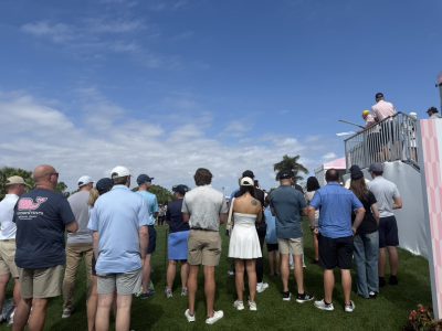 人がたくさん集まっているな〜とティグランドを除くと、ケプカの姿が!実はここウェストパームビーチは、ケプカの出身地なんだとか。地元のヒーロのプレーにみんな釘付けだった。