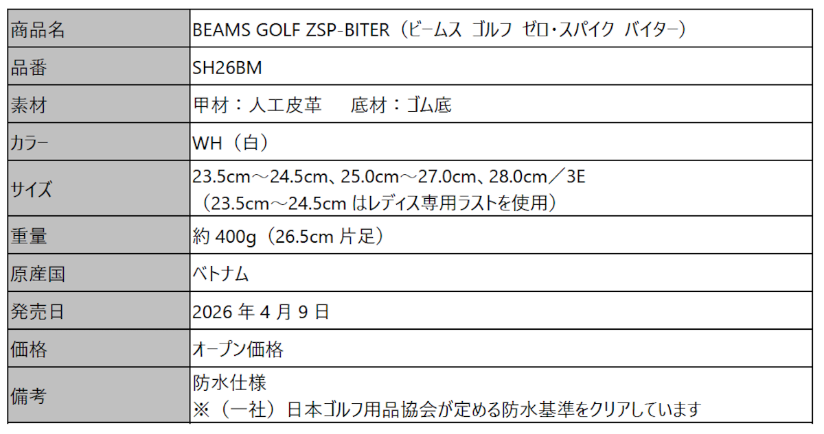 ブリヂストンスポーツ株式会社は、ファッション感度の高いゴルファーから支持を集める「BEAMS GOLF」がプロデュースしたスパイクレスシューズ『BEAMS GOLF ZSP-BITER』を4月9日に発売する。価格はオープンである。