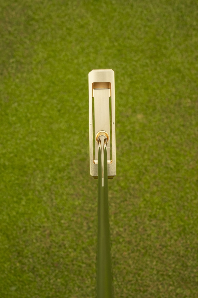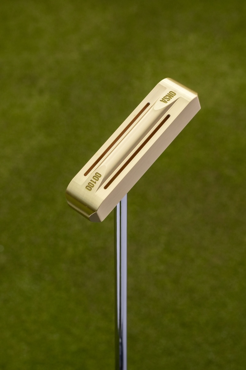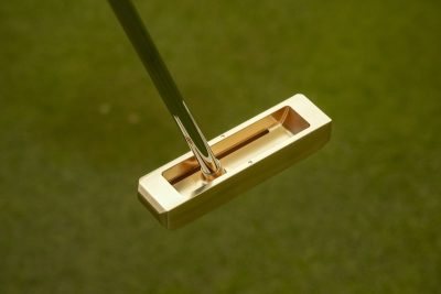 「ONSA00100」パター最大の特徴は、何と言ってもその打球音だ。ヘッドは真鍮製の完全削り出し。