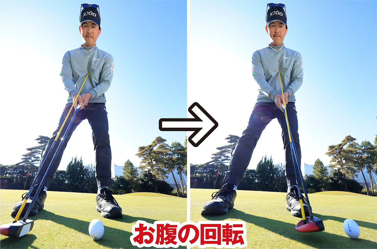みぞおちとパターヘッドがスティックで連結している感覚が大事