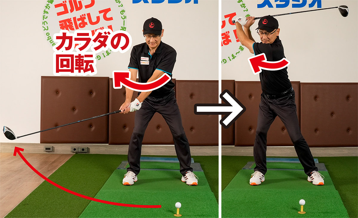 飛ばせる人のテークバックはカラダの回転主体でクラブを上げている!