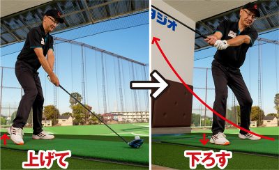 右カカトの上げ下ろしでカラダ主導のテークバックがスムーズになる
