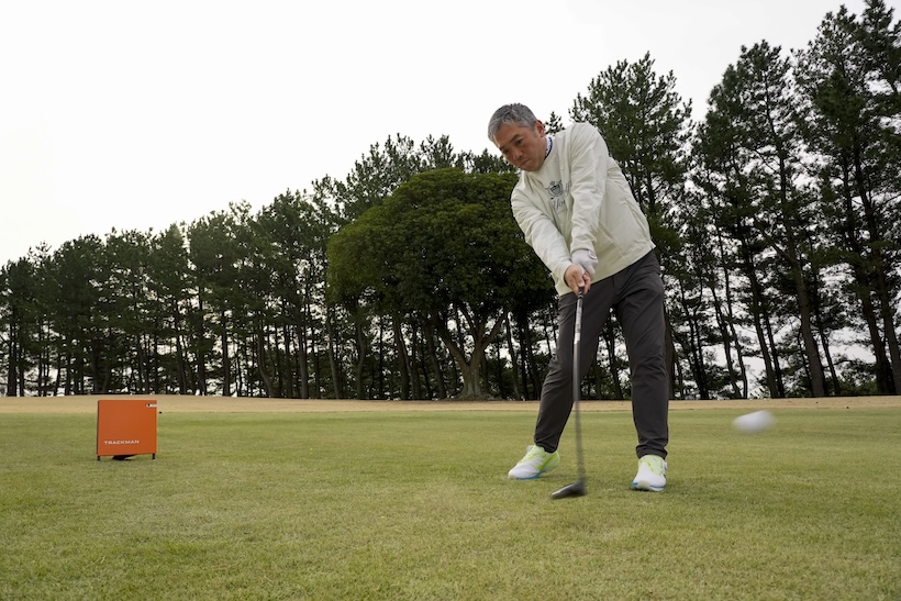 「平たいヘッドは投影面積が大きくお尻が長い。重心が深い位置にあるからこれだけ球が上がるんでしょうね。ソールもすごく機能しています。フェアウェイはもちろんラフからも打てる。ディボットからも打ってみましたがフェアウェイと同様に球が浮きました。ソールがヘッドを導いてくれるような感覚がありますね。打音も打感もともによし。カチッというソリッドな音がしますが硬い打感ではありません。小気味よい打音で程よく軟らかい打感です」