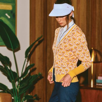 トレフォイルロゴを全体にあしらったニット素材のポロシャツやベストは、クラシカルなムードと現代的なバランスを兼ね備えたデザインが特徴。配色の切り替えを施し、スタイリングにさりげないアクセントを加えた。また、クリーンなカラーが印象的なポロワンピースは、コンパクトな襟元とミニマルなデザインで、上品さと軽やかさを両立している。