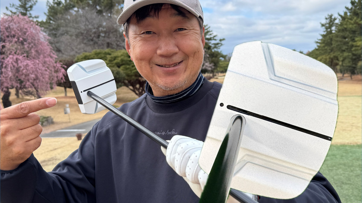 5種類のヘッドの中から、今回は個人的に一番気になっていた「ALLY BLUE ONSET」をメインに試打。これ、開幕戦からパット巧者の鈴木愛プロが使っているらしいので、めちゃ気になっているんですよ。その鈴木プロはこの「ALLY BLUE ONSET」を「ブレードの操作性とマレットの安心感のいいとこ取り」と言っているそうです。