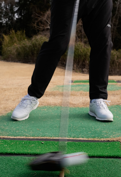 適度にしなって、しなり戻りのスピード感が自然で“たまり過ぎる”ことも“走り過ぎる”こともないので振りやすさも抜群です。また、ヘッドが地面と平行に振り抜けるので、インパクトゾーンが長くなる感覚です。球をしっかりと押しながらヘッドが振り抜けるので、強い弾道が出ます。