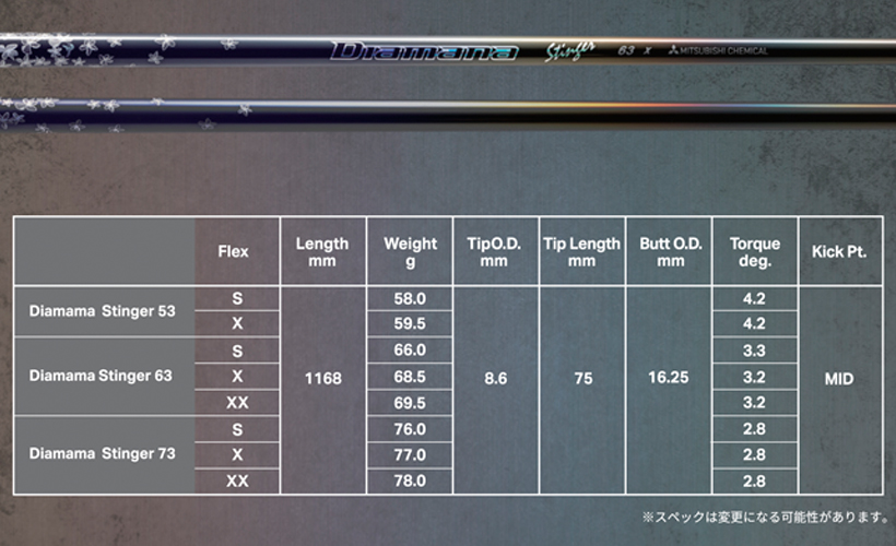 そんな名前が与えられた最新作は、素直で癖のない中しなりで、プレーヤーのタイプもヘッドタイプも選ばない究極のシャフトを目指して開発されている。シャフト全長にボロンと高弾性ピッチ系カーボン「DIALEAD」を惜しみなく使用。スムースフィールと力強い弾道を目指した設計となっている。