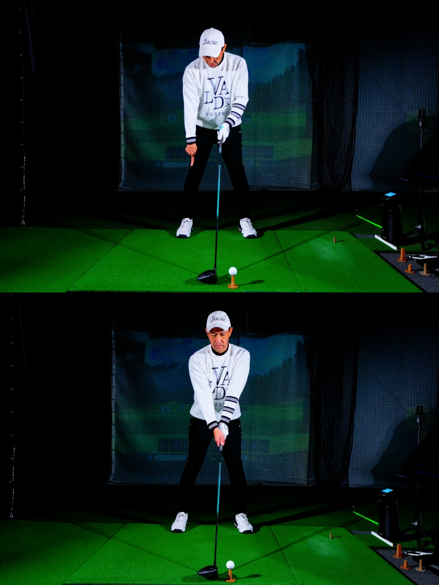 「あと、アドレスでの体重の感じ方なんですが、軽く足をバタバタさせてみてください。そしてバタバタをやめる。すると体重はだいたい母指球あたりに乗ると思います。そこに自然に体重が乗っていれば、それが正解です」(内海プロ)