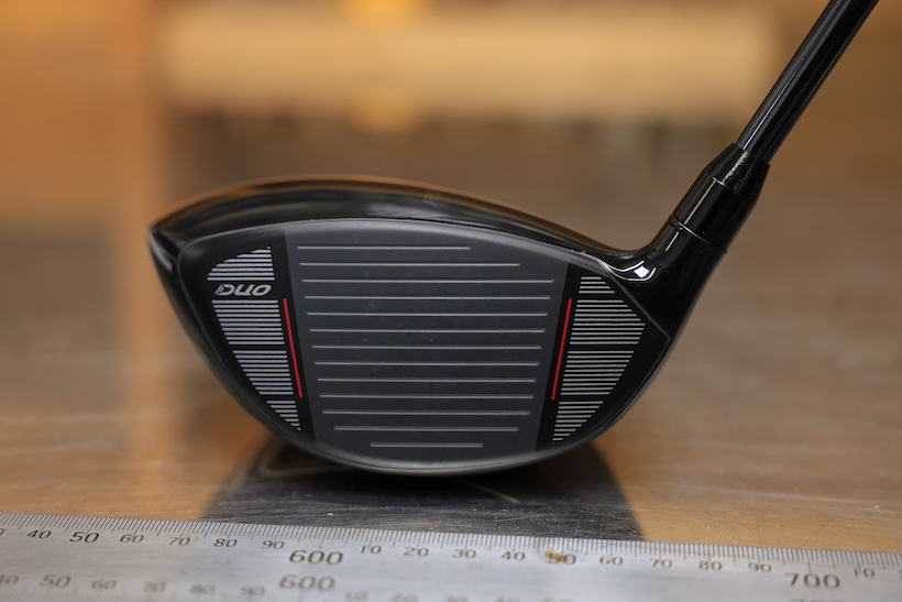 フェースには「DUO」の文字が見える(写真下)。大槻が使用する「RS MAX」の他に、「RS」と「RS F」の合計3つのモデルがあることを確認できている。「ダイキンオーキッドレディス」では、プロギア契約選手である小林夢果が「RS」をテストしており、調整中ということだった。そして、一見するとカーボンフェースのように見えるが、「DUO」という文字から想起されるのはカーボンと金属素材の2層構造フェースだ。写真は「ダイキンオーキッドレディス(撮影:小林司)」