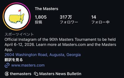 世界四大メジャーの一つである「The Masters(マスターズ)」は、テレビ中継だけでなくSNSでも世界中のゴルフファンを魅了している。その中心となっているのが、公式インスタグラム「@themasters」。フォロワーは約317万人を超え、世界中のゴルフファンが大会の様子をリアルタイムでチェックする場となっている。もちろん筆者もその一人。