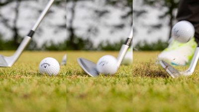 「手に取ってソールを見た限りでは、うまい人が使うウェッジだな、という印象でした。58度のフルショットで80ヤード飛ばない感じだろうと思っていましたが、打ってみるとヒール側のバウンスが効いてボールを前に飛ばしてくれる。スタイルはさておき、ソールの削り方に工夫がある本格派のウェッジの場合、振るほどヘッドがボールの下を潜って上に飛びやすいですが、X フォージド ウェッジはボールをつかまえてくれます」(石井)