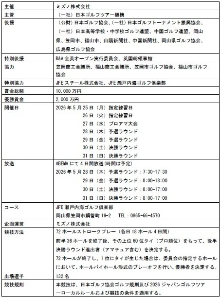 本大会は、1971年のミズノ主催大会「美津濃ゴルフトーナメント」を前身とし、1998年からは