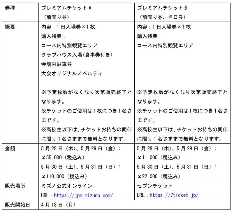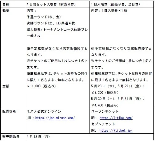 ギャラリー入場券は、2026年4月13日(月)からミズノ公式オンライン、ローソンチケット、セブンチケットで販売中。さらに、大会期間の全日程をABEMAにてリアルタイムで放送する。