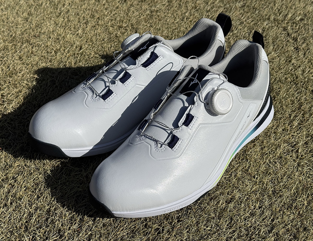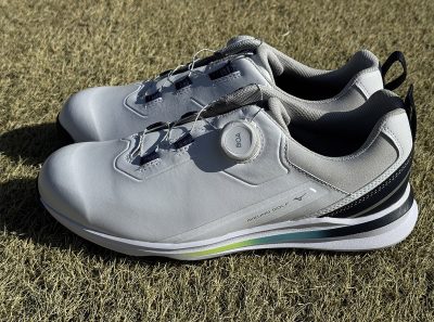今回、ミズノの「NEXLITE ENERZY II WIDE BOA」を履いてラウンドをしてみたのですが、軽快な履き心地がとても心地よかったです。歩きやすいし、スイングもとてもしやすい。ソールもよくできていると思いました。ウィズも3Eと4Eが用意され、幅広の人でも気持ちよく履けるところもいいですね。