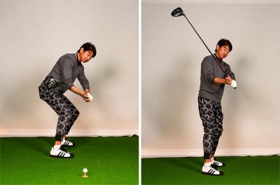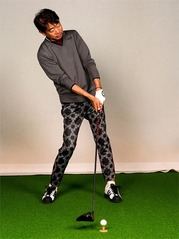 見た目の感じで言うなら、構えた時にフェースが見えるくらいの方が、ロフトがしっかりあって球もつかまりやすいと思います。ただ、前回お話したようにシャフトを軟らかいものに替えている場合は、しなり戻りがうまく使えてインパクトロフトがデュアルロフトより多くなりますから、その場合はロフトを増やさなくてもいいでしょう。参考までに記しておくと、ロフトが適正であった場合のスピン量は毎分2500回転くらい。もしデータを見ながら打つ機会があれば2500回転を目指すといいでしょう。