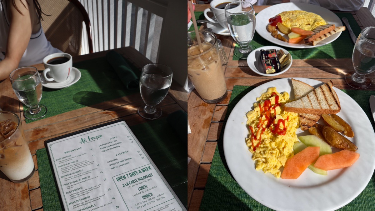 プレー後、贅沢な朝食も優雅に堪能した。このプレートでなんと2300円。カフェラテを合わせると、一人3500円ほど。びっくり。