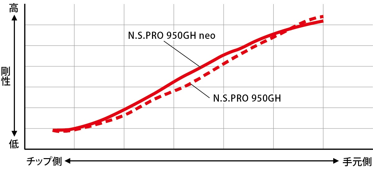 N.S.PRO 950GH neoとN.S.PRO 950GHの剛性分布