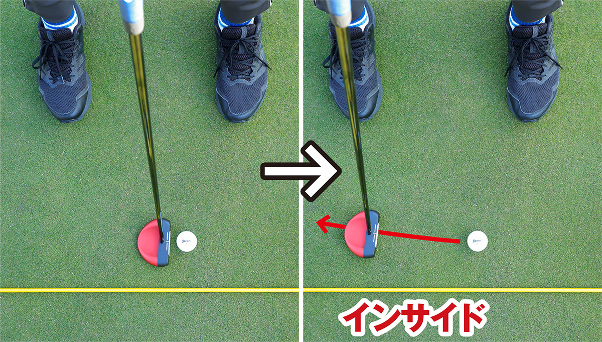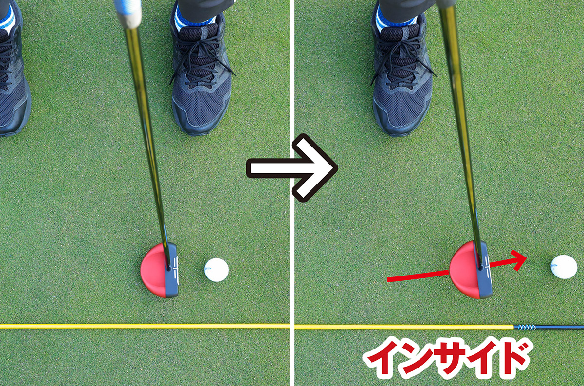 ストレートに近いイン・トゥ・インの軌道で振れば狙った方向に真っすぐコロがせる!