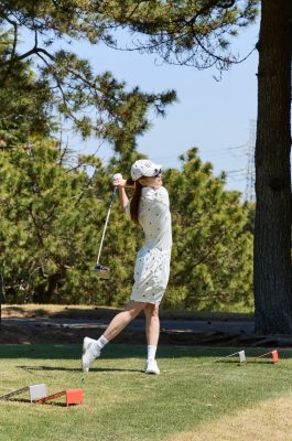 また、ユニセックス仕様になっているため、少しゆったりとしたシルエットで着るのもおすすめ。ボーイズライクな雰囲気を楽しめるので、普段のゴルフスタイルに変化をつけたい人にもぴったり。まさに、私!!!!!!!いつもはピタピタミニスカートスタイルを好んで着ているのだが、「たまにはこんな雰囲気も♪」と、るんるん。リラックス感はありながらも、だらしなく見えない絶妙なバランスで、ラウンド中も快適にプレーすることができた。