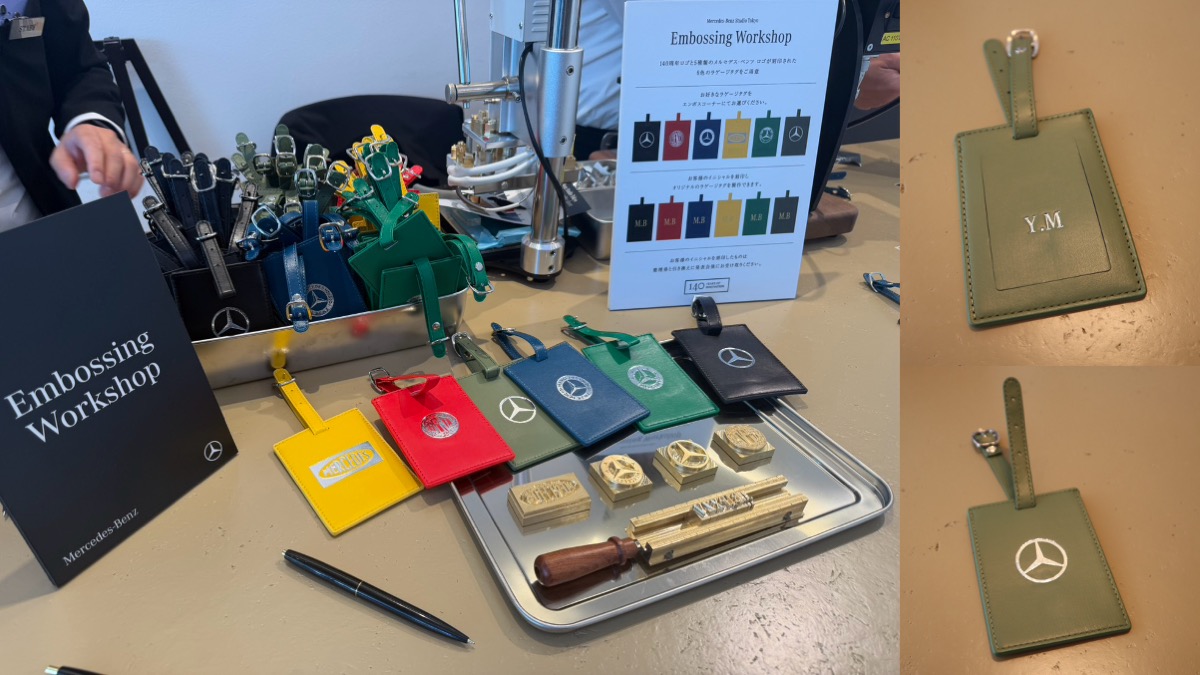 さらに、試乗予約者にはその場でメルセデスロゴを刻印できるオリジナルレザータグのサービスも用意。細部までブランド体験を楽しめる作り込みで、クルマ好きはもちろん、カルチャー好きにも刺さるスポットになりそう。