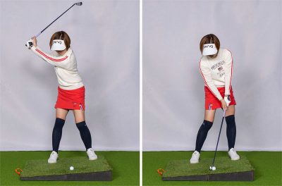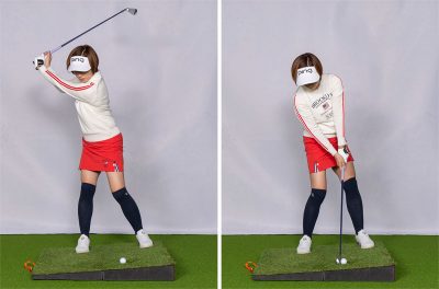 これに対し、傾斜に逆らうように立ち、クラブヘッドを斜面にブツけるように打つと、距離が出て打球も高くなりすぎません。ある程度距離を打つ必要があったり、風の影響を受けたくない時にはこの打ち方がベターです。アベレージゴルファーの場合、ティショットをミスして左足上がりの傾斜に行ってしまい、セカンドショットでユーティリティなどの長いクラブを持たなければならないことがあると思いますが、そんな場面で傾斜なりに打ったら打球が上がって距離が出ないだけでなく、曲がってOBといった事態も考えられます。