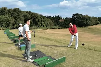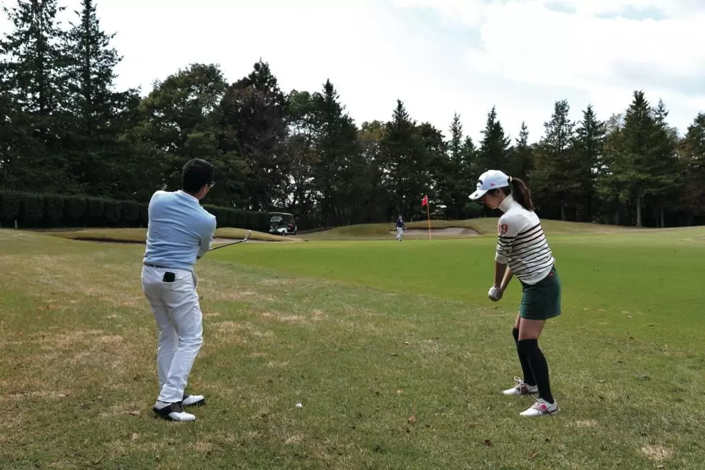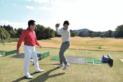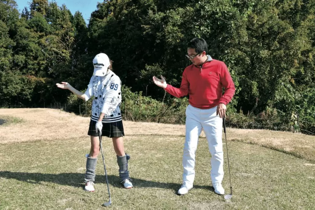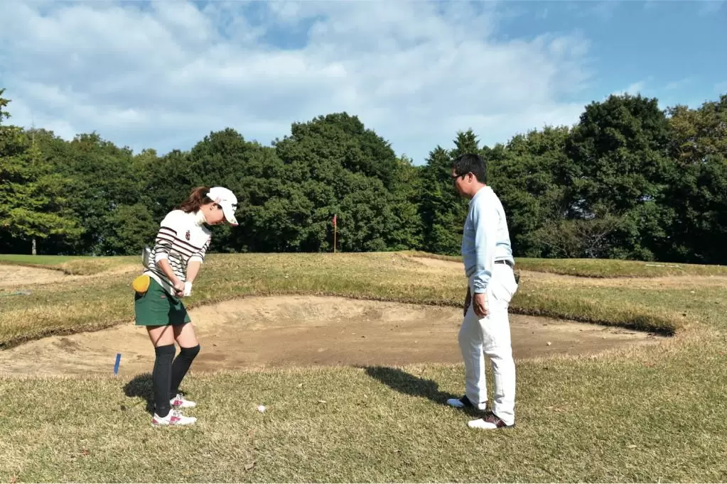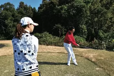 手首に頼った振り方の影響で、インパクトで左ヒジが引けていた鎌田さん。「左手のかぶせ方を調整して、強く引ける体勢を作れれば直ります」(松吉)
