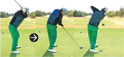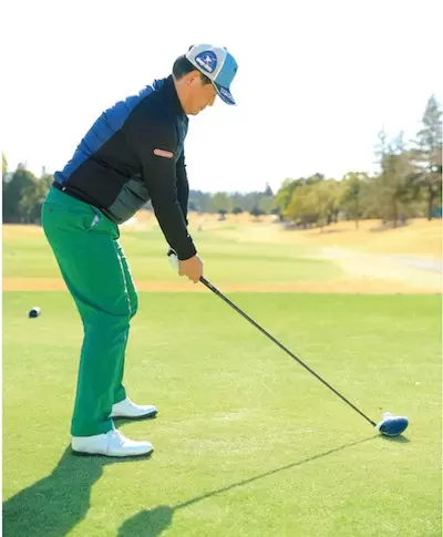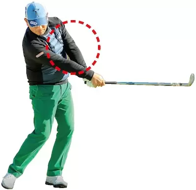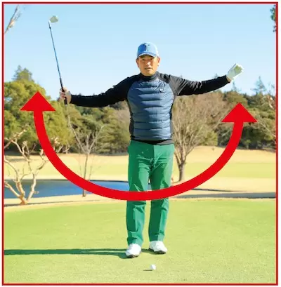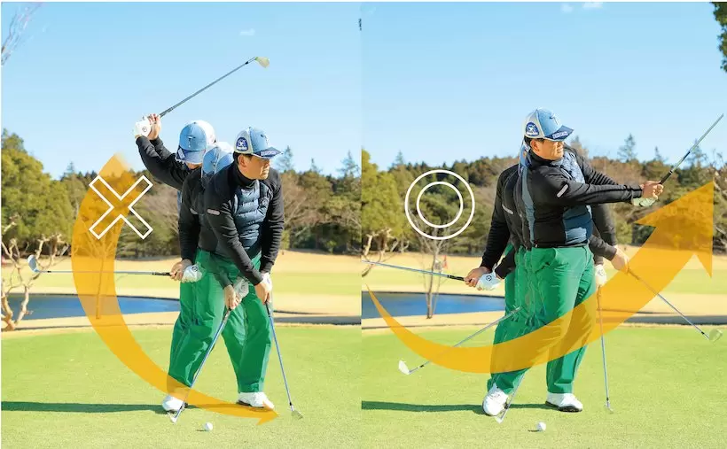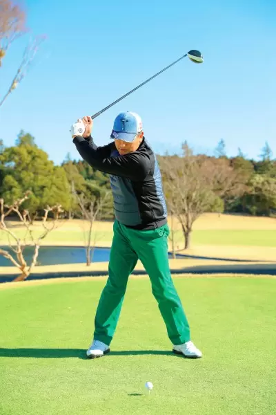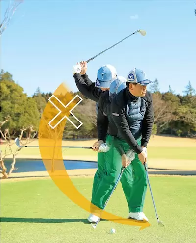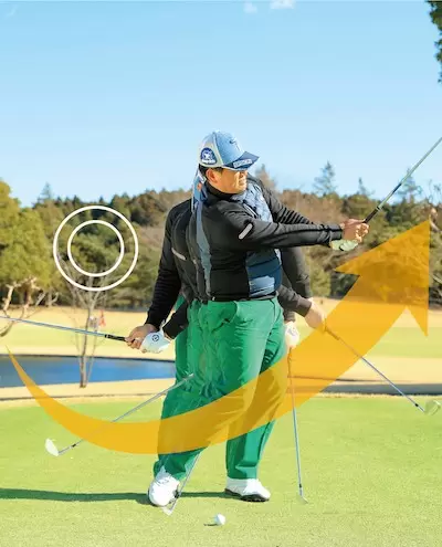 加速=マン振りではないスイングの速度にメリハリを付けフォローに向かってスピードを上げていく意識が必要だ。