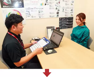 フィッター&クラフトマンの寺下智也さんが、坪井さんに最適なアイテムを選んでくれた。