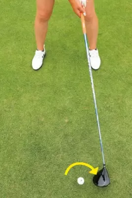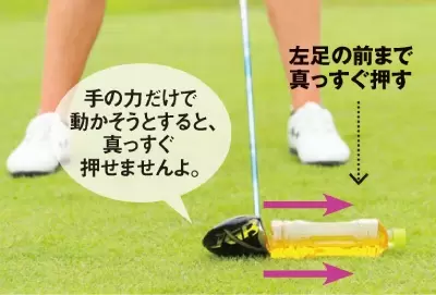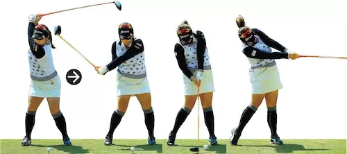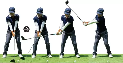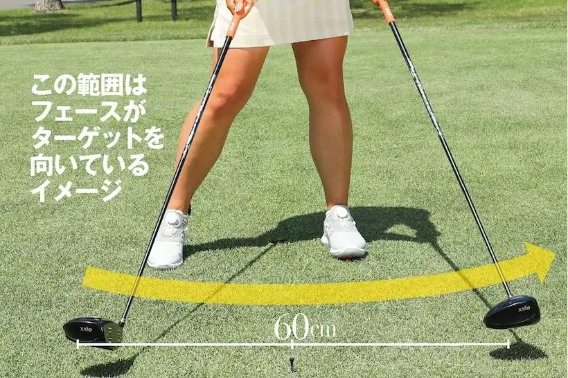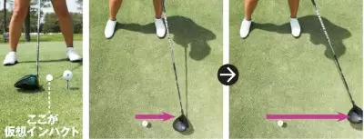 インパクトでは、フェースの向きを飛球線方向で、そのままフィニッシュに。