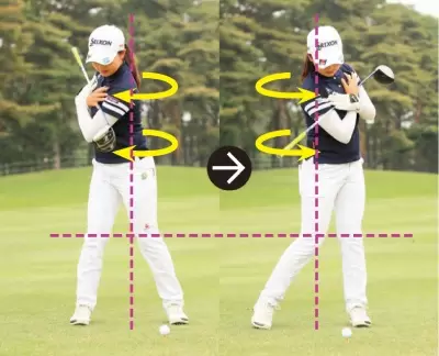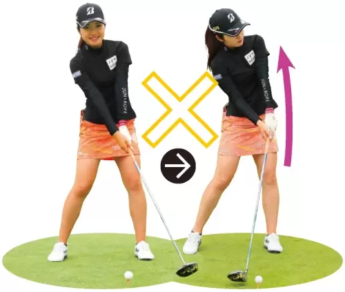 トップにかけて、常に体の正面にクラブがある。