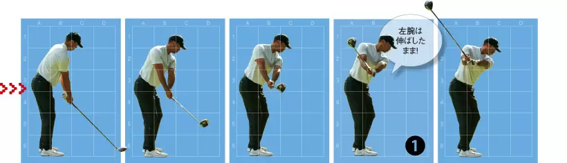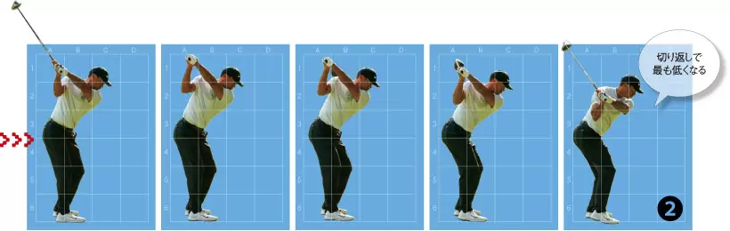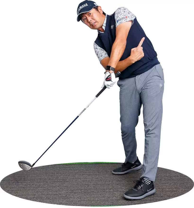 ダウンスイングで上半身を沈み込ませることで、体が開きにくくなるので、スライス解消にもつながる。