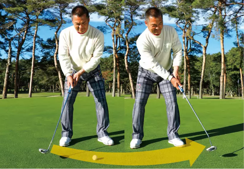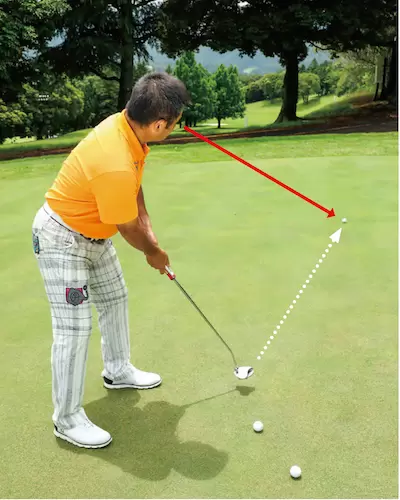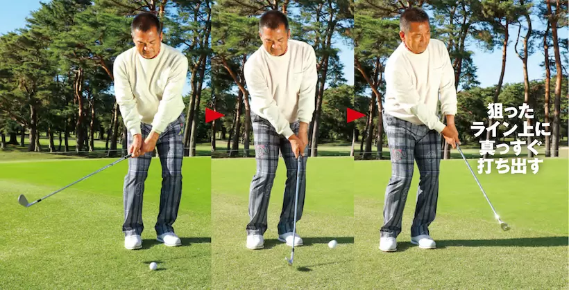 体を大きく動かさず、首の付け根を安定。右手で距離感を作り、ライン出しを最優先に考える。この延長にパッティングがある。