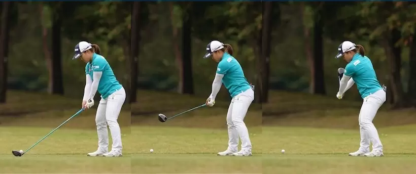 最近、欧米の選手にはシャットフェース系のスイングが主流だが、畑岡はしっかりフェースローテーションを使うタイプ。