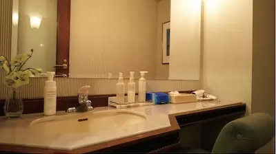 白が基調、高級感があるパウダールーム。