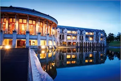 ライトアップされたホテル中庭。