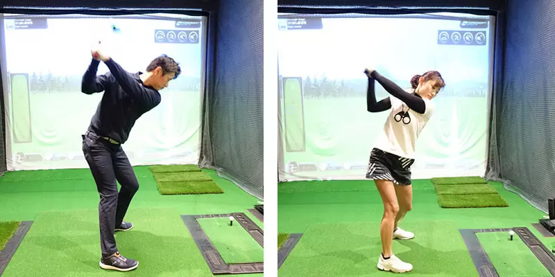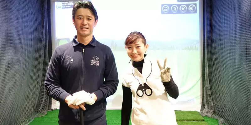写真左:⼤⼿⽣命保険会社に勤めるアマチュア「関 弘哉」さん 写真右:JPDA ツアープロB級ライセンス保有の「中⾥さや⾹」プロ