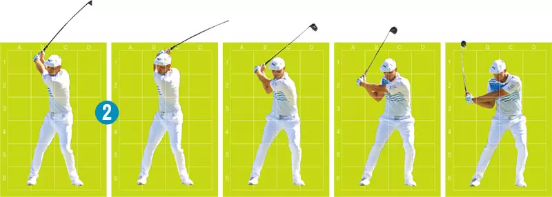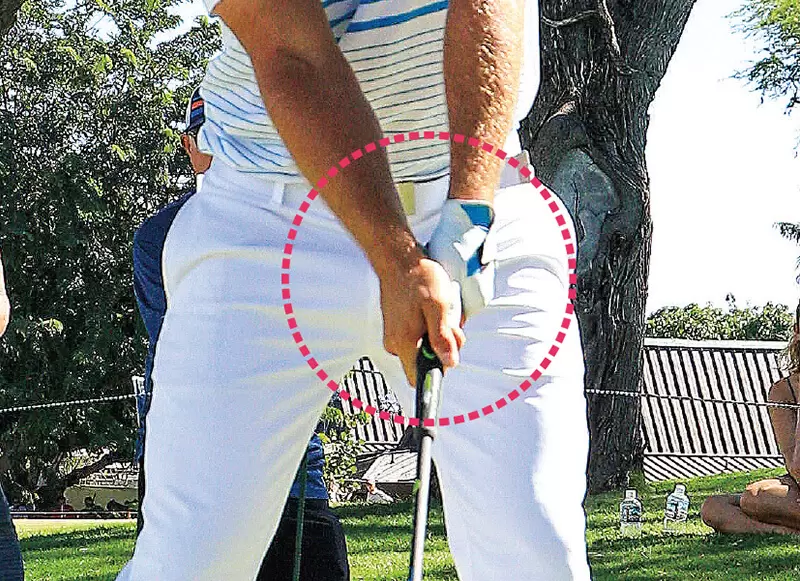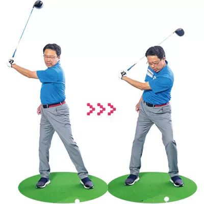 左肩が上がってしまう人は、左ヒジが目標を向き、クラブも寝てしまう。