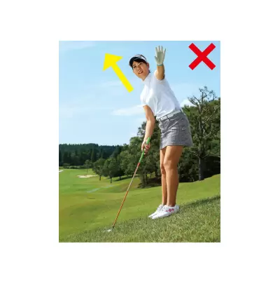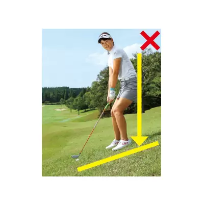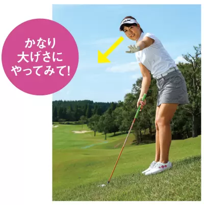 上から叩き込むと、フォローでのヘッド軌道はインサイドへ。