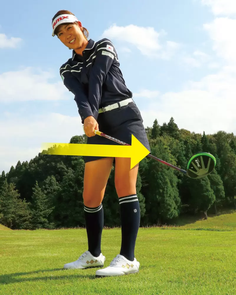 フェースを閉じている分、インサイドアウトに振っても球は捕まえることができます。